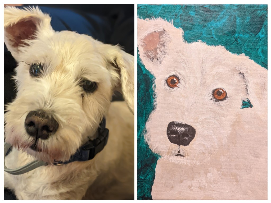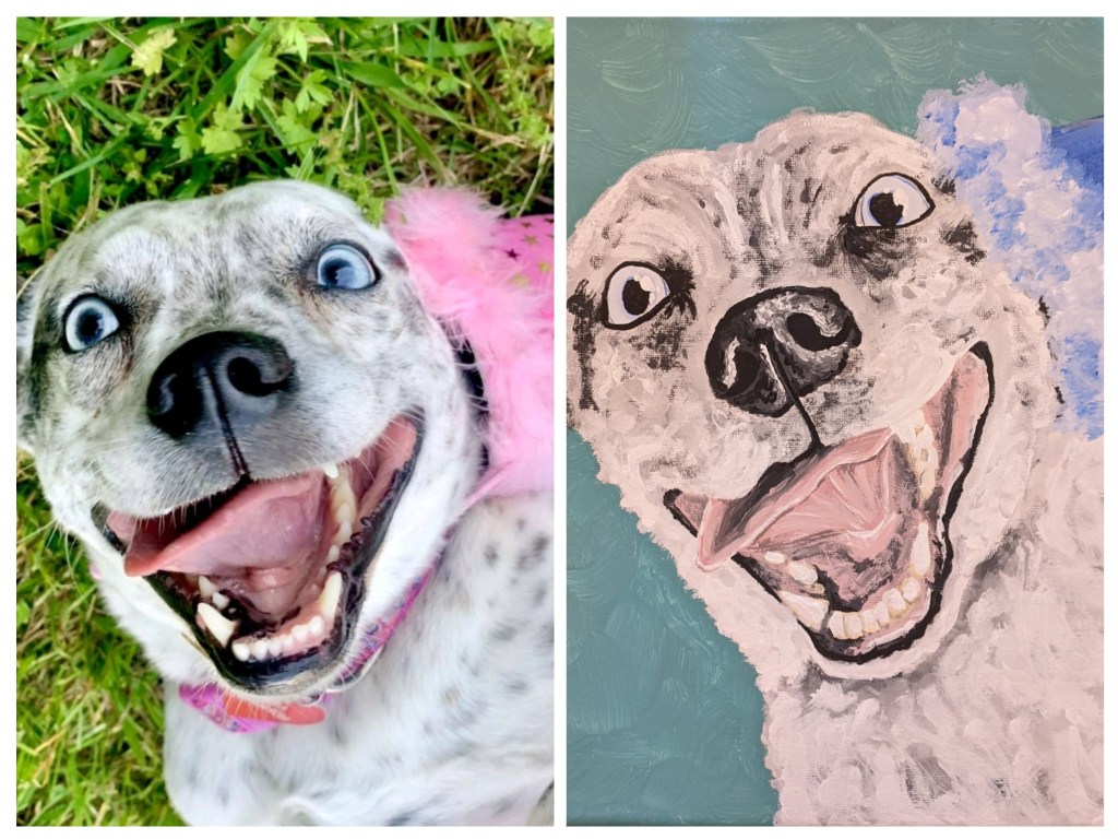 Send proof of a $100 donation to Isabella, a local artist, at izenker15@gmail.com with a clear photo of any pet to receive a personalized pet portrait on an 8×8 canvas! She can do any pet, not just bunnies! Once completed, she will arrange pick up and send you back to us for shipping!